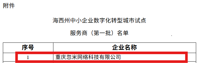 忽米科技入选海西州首批中小企业数字化转型城市试点服务商名单